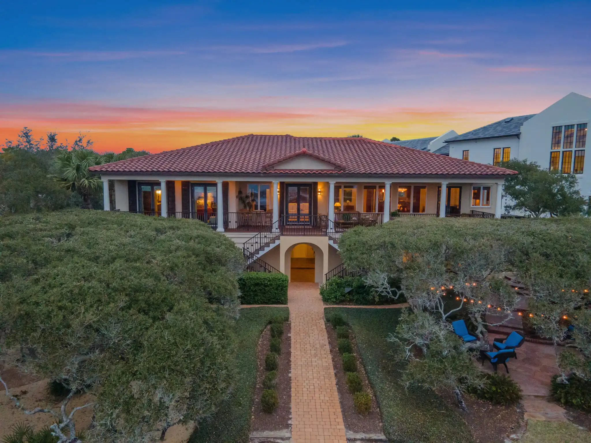 This 5-bedroom, 6-bathroom residence spans over 6,800 square feet and showcases the refined coastal craftsmanship of Geoff Chick & Associates, one of the most sought-after architectural firms along 30A.